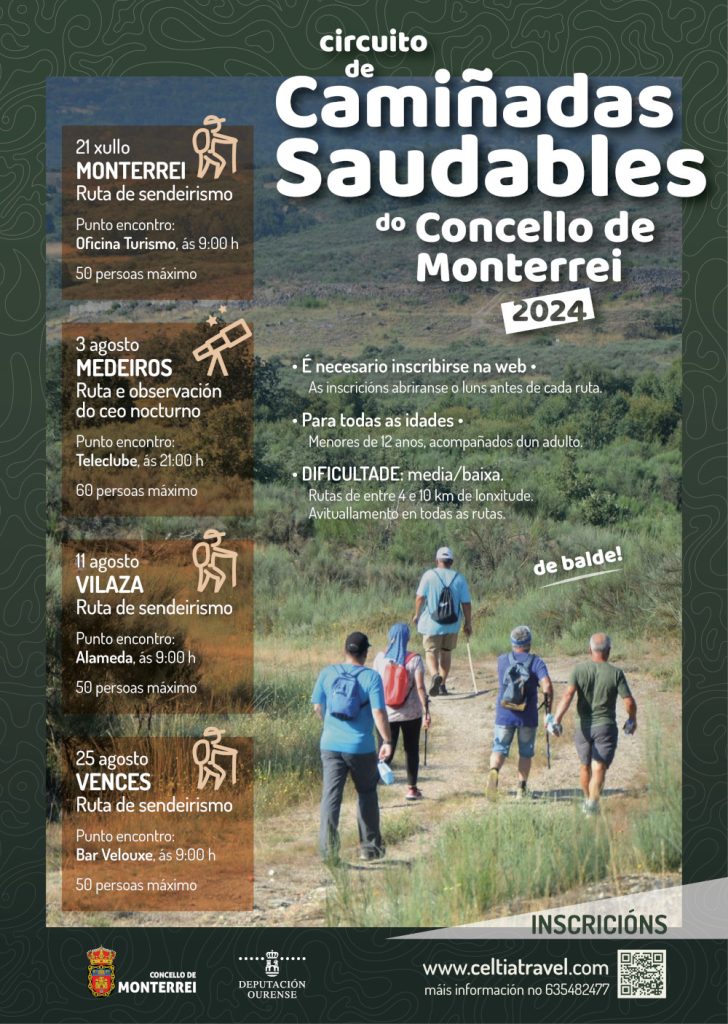 Por quinto ano consecutivo o Concello de Monterrei e a Deputación de Ourense poñen en marcha o programa Circuito de Camiñadas Saudables. Dende Celtia Travel queremos agradecer a confianza depositada en nós para a organización do mesmo unha tempada máis.