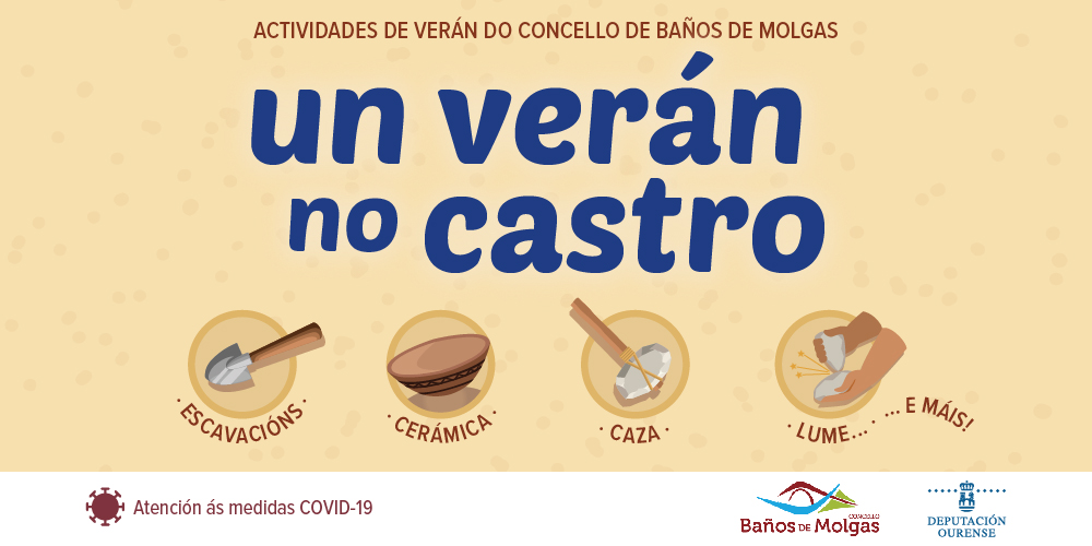 O concello de Baños de Molgas e a Deputación de Ourense promoven Un verán no castro: obradoiros temáticos de Arqueoloxía Experimental para público familiar formado por un adulto e menores ao seu cargo.